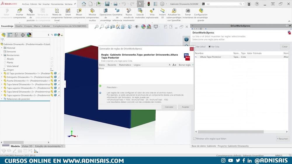 A mi parecer este curso es el que tiene un mejor valor porque las herramientas de automatización te ayudan a ahorrar muchísimo pero muchísimo tiempo a la hora de trabajar, lo he vivido y es una de mis especializaciones y es una de las cosas que hago para vivir, he llevado numerosos proyectos de automatización de diseño en todo México y es increíble ver como por ejemplo de actividades que antes tomaban un par de días ahora sólo demoran 5 minutos, proyectos que antes tardaban 6 meses, ahora sólo 6 semanas, te podría mencionar muchos casos de éxito pero lamentablemente por propiedad intelectual no puedo mencionarlos en especifico. Aquí te enseñaré cómo usar correctamente las distintas herramientas de las que dispone SolidWorks, las ventajas y desventajas así como casos prácticos donde conviene aplicarlas en especifico. 4:09 horas de videos Temario: - Introducción a las distintas herramientas de automatización del diseño - Configuraciones - Configuration publisher - Administrador de ecuaciones - Tablas de diseño - Comparativa, ventajas y desventajas de los distintos métodos de automatización del diseño